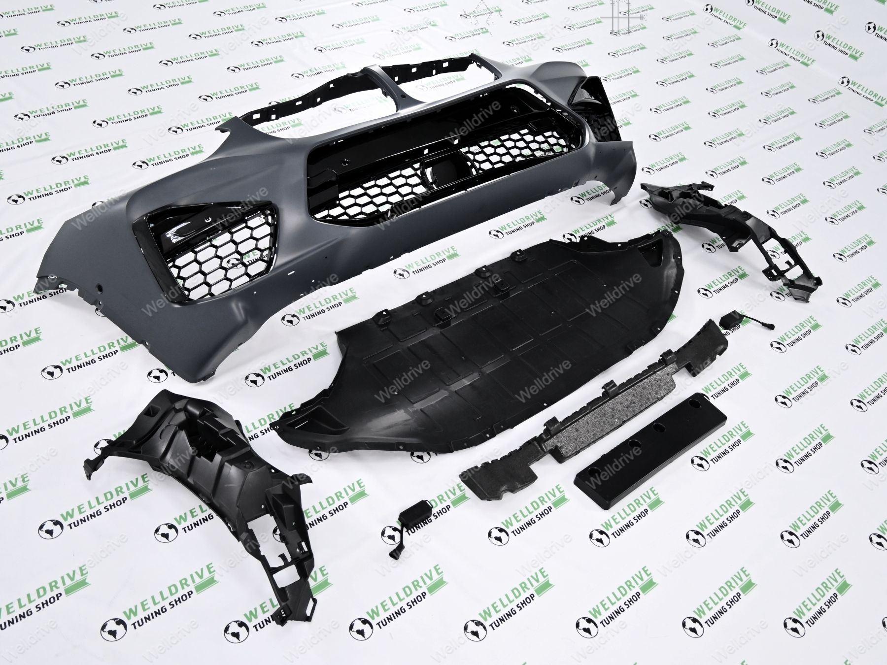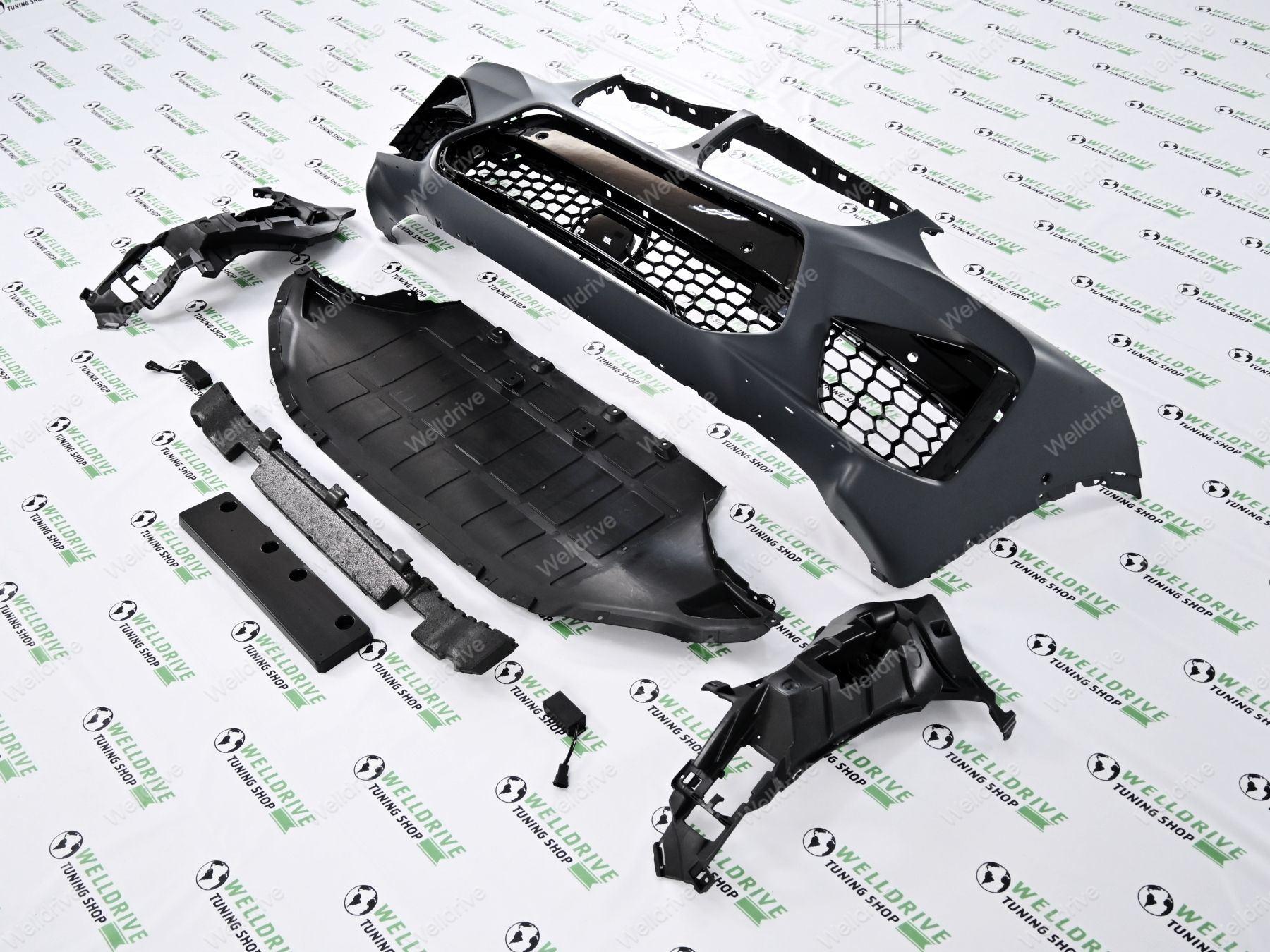 Материал: все детали выполнены из тех же материалов, что и оригиальный бампер (ПП и абс пластик).