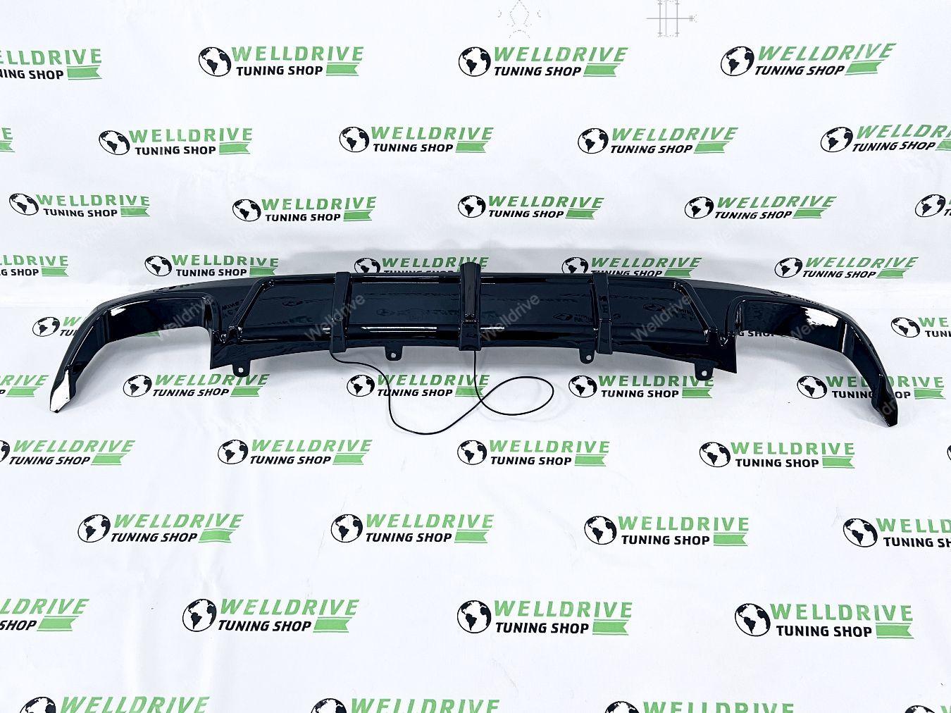 Диффузор заднего бампера без М-Пакета(не M-Tech) с LED стоп-сигналом для BMW 5-серии в кузове G30 черный глянец