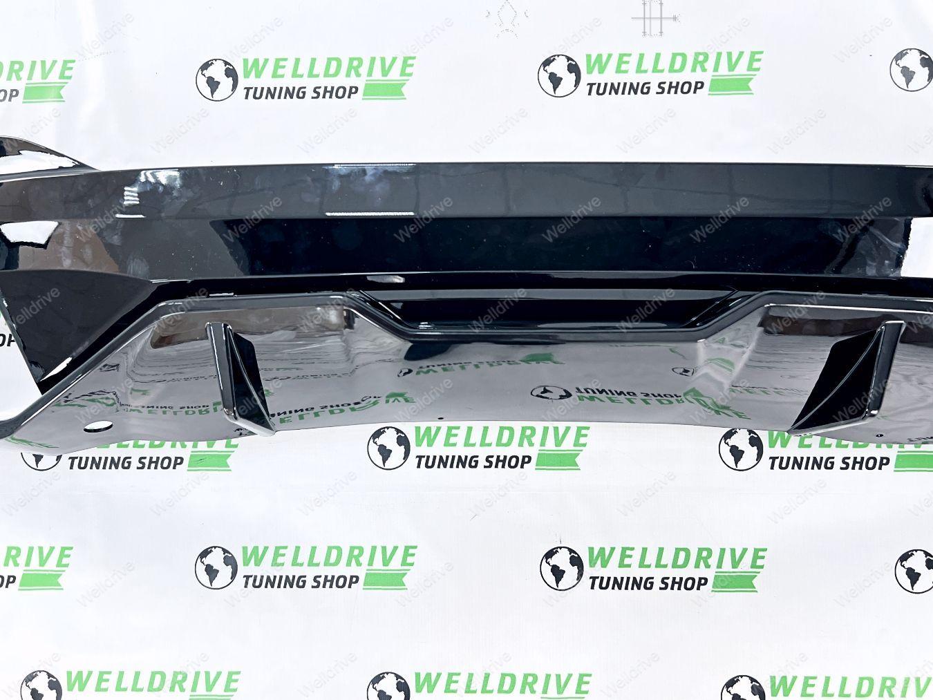 - Разработан для установки системы выхлопа с двумя трубами, создавая гармоничный и спортивный облик задней части автомобиля.