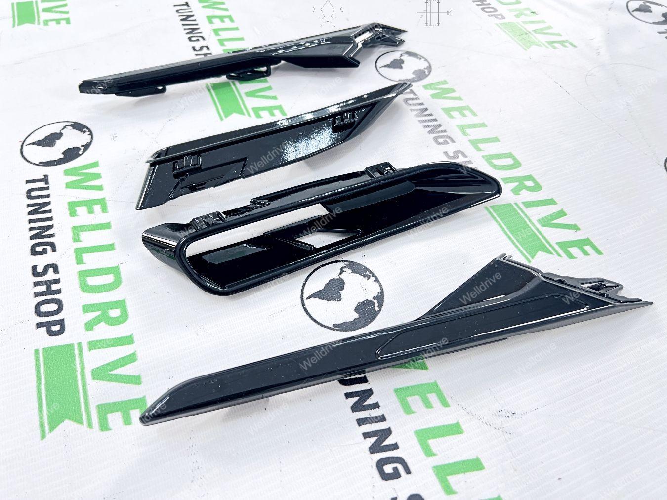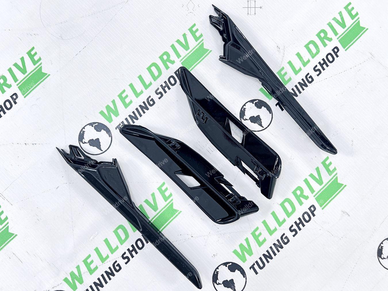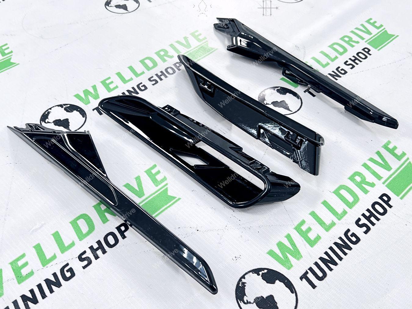 (BMW 5 series G30 g 30 G31 БМВ 5 серия кузов Джи 30 Г 30 г 31 г31 7 поколение седан sedan sd сд 4d 4д 4 д d универсал universal туринг 5d 5 5д touring turing 520d 520i 530i 530d M550d 540i M550i M 550i 4.4 AT 2016 2017 2018 2019 2020 2021 2022 2023 2024 2025 16 17 18 19 20 21 22 23 24 25 Дорестайлинг дорестайл дорест Pre LCI пре лси PreLCI прелси Рестайлинг рестайл рест LCI лси покрашенные черный глянец окрашенные в глянцевый Shadow line Shadowline шедоулайн шэдоу лайн шедоу gloss black не под покраску неокрашенные M5 M 5 М5 М боковые накладки на передние крылья воздуховоды левая правая тюнинг дооснащение с решетками жабры спойлеры сплиттеры имитация обвес комплект)