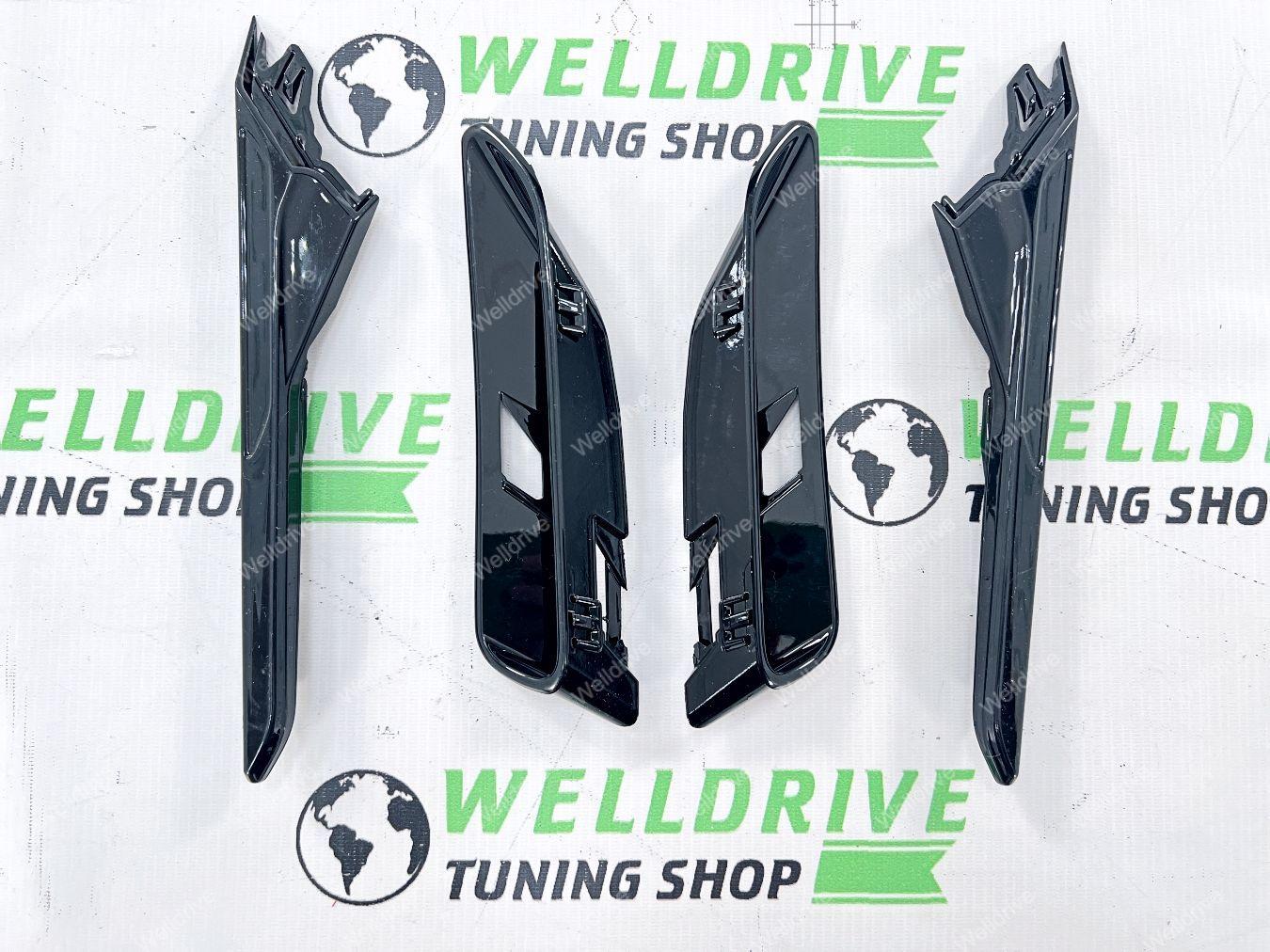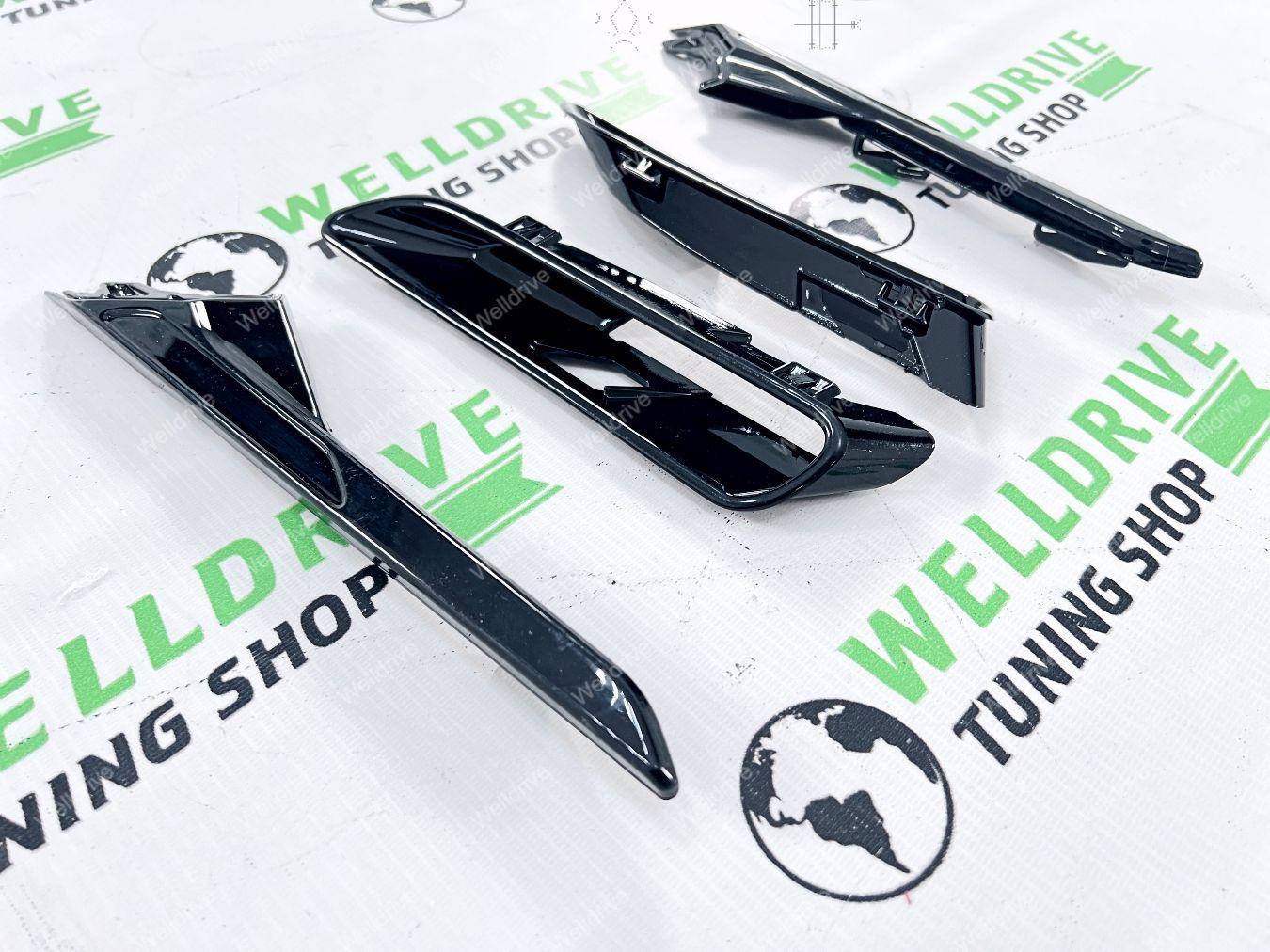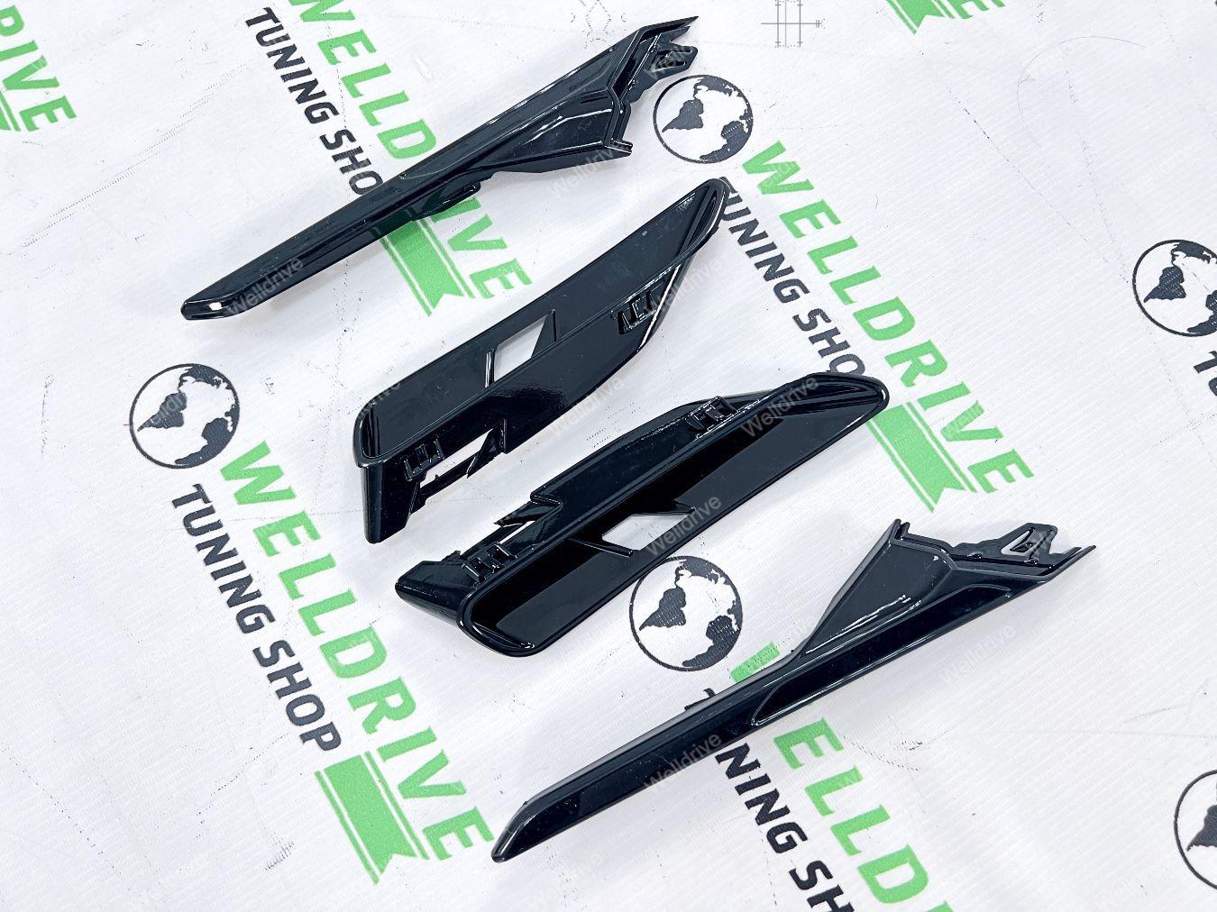 (BMW 5 series G30 g 30 G31 БМВ 5 серия кузов Джи 30 Г 30 г 31 г31 7 поколение седан sedan sd сд 4d 4д 4 д d универсал universal туринг 5d 5 5д touring turing 520d 520i 530i 530d M550d 540i M550i M 550i 4.4 AT 2016 2017 2018 2019 2020 2021 2022 2023 2024 2025 16 17 18 19 20 21 22 23 24 25 Дорестайлинг дорестайл дорест Pre LCI пре лси PreLCI прелси Рестайлинг рестайл рест LCI лси покрашенные черный глянец окрашенные в глянцевый Shadow line Shadowline шедоулайн шэдоу лайн шедоу gloss black не под покраску неокрашенные M5 M 5 М5 М боковые накладки на передние крылья воздуховоды левая правая тюнинг дооснащение с решетками жабры спойлеры сплиттеры имитация обвес комплект)