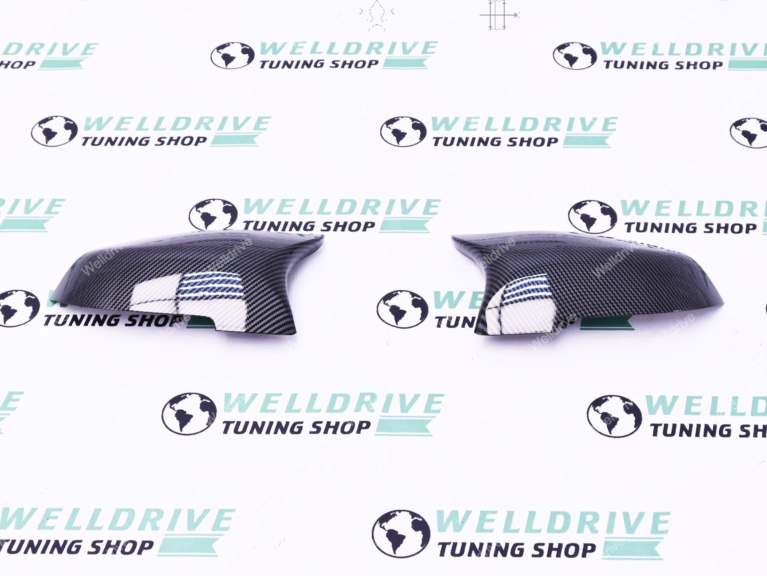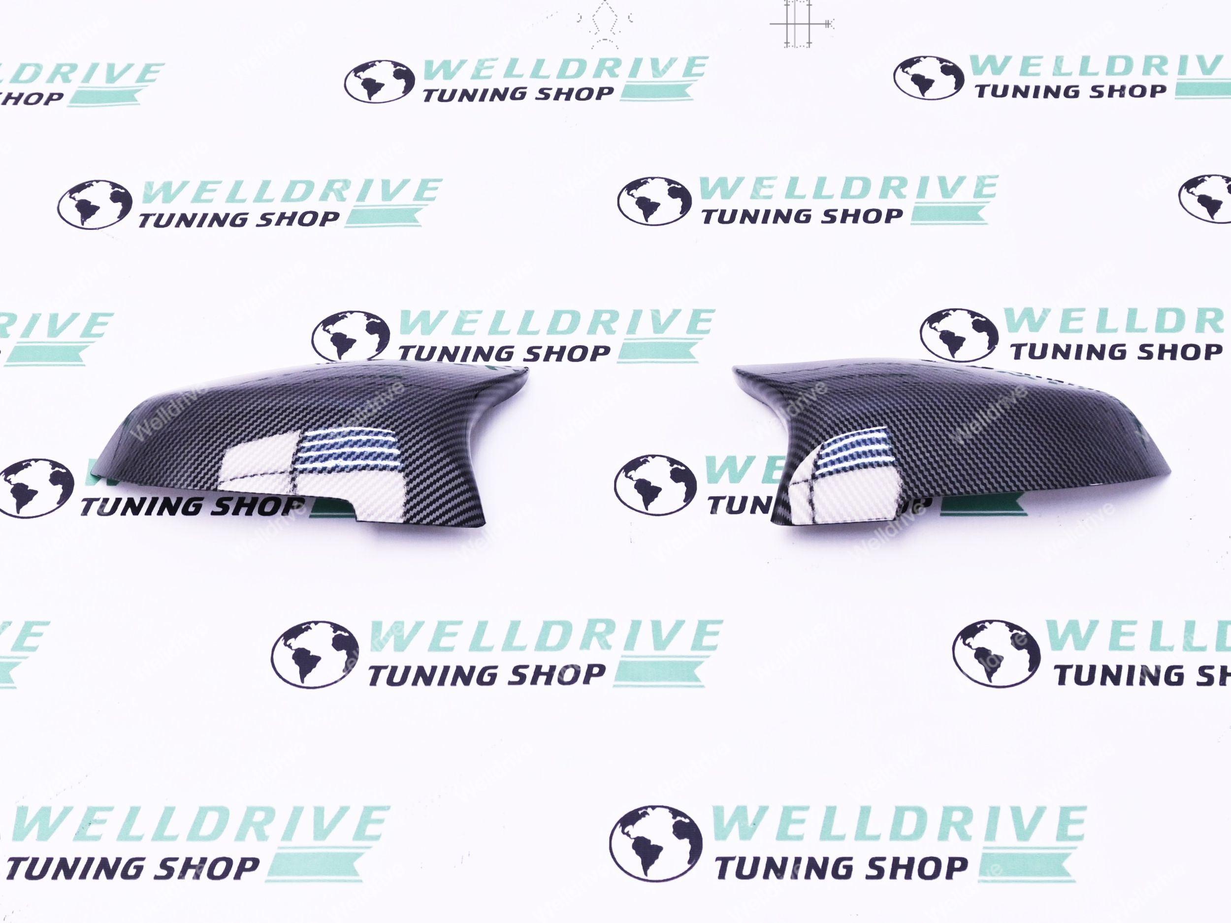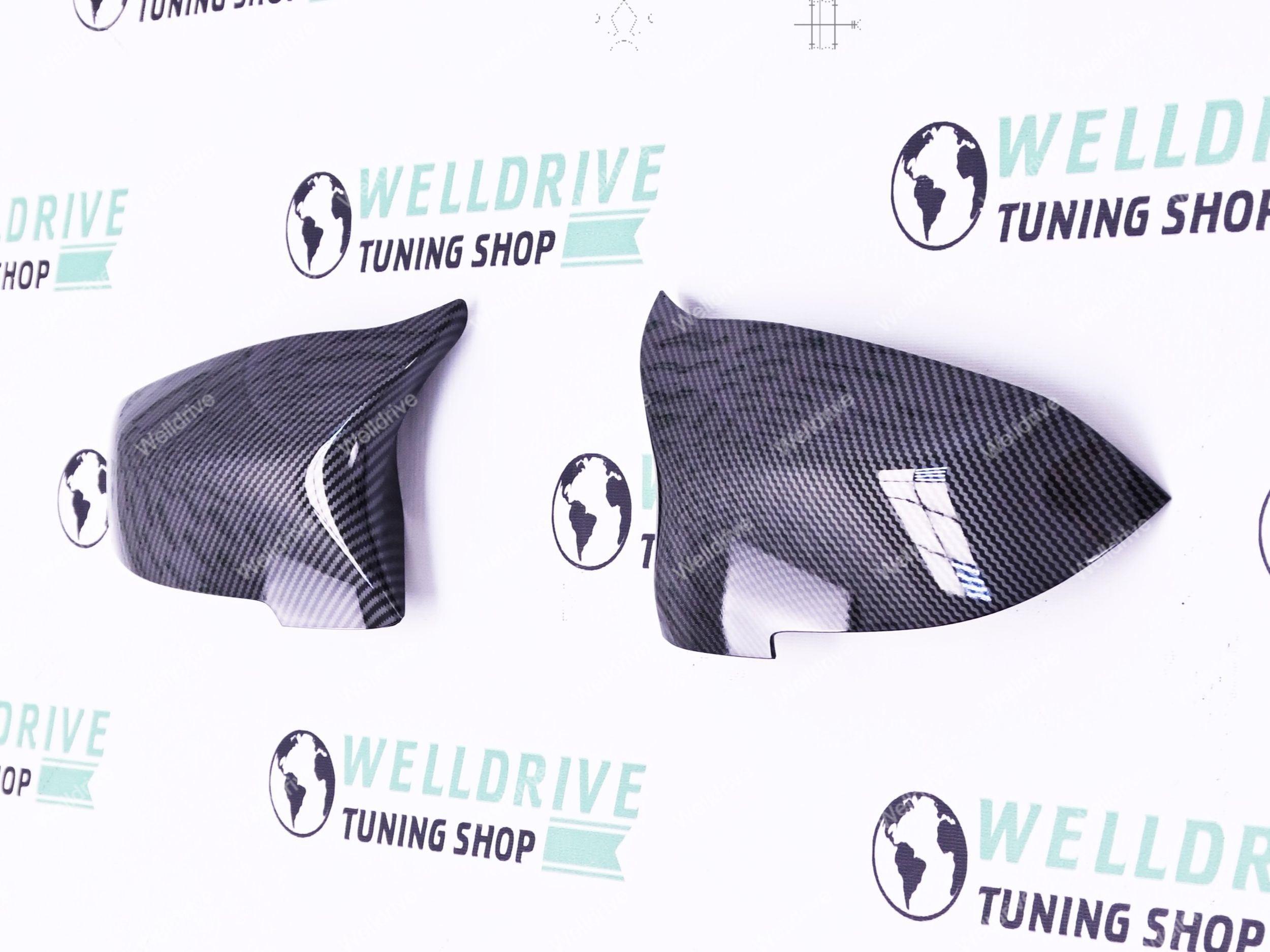 Способ установки: устанавливаются штатно на защелки вместо старых крышек зеркал. Поэтому не путайте с более дешевыми аналогами накладок на зеркала, которые приклеиваются на Ваши штатные крышки зеркал на 3м скотч. Они выглядят инородно и не так эффектно как крышки зеркал на защелках..
