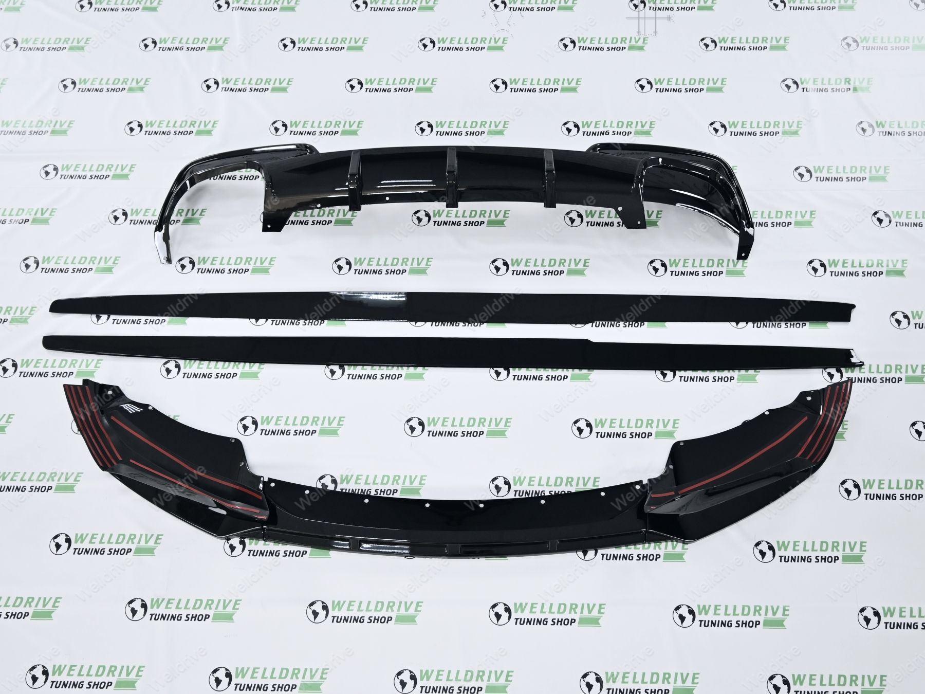 Комплектность: губа переднего бампера, диффузор заднего бампера, лезвия под пороги.