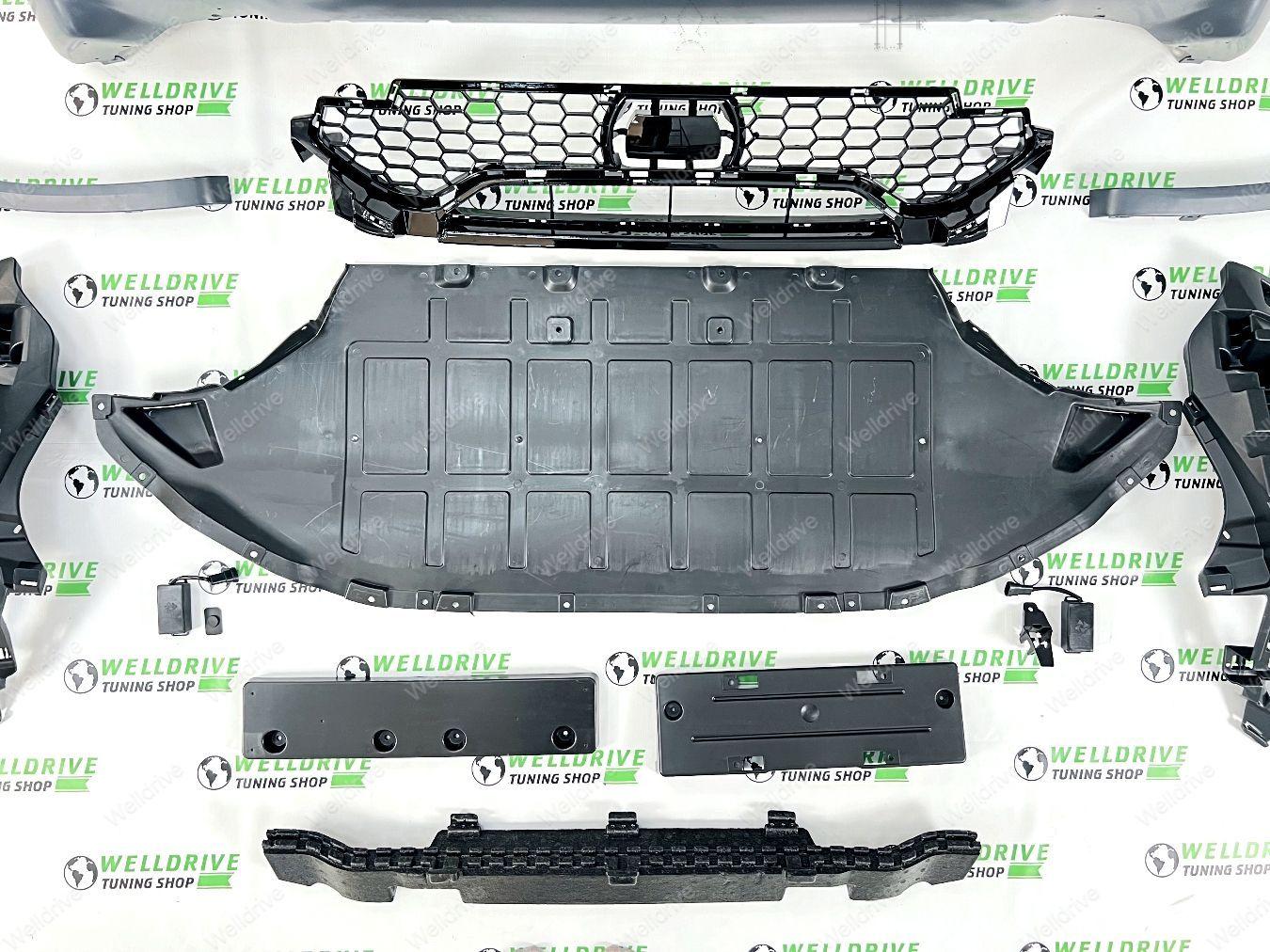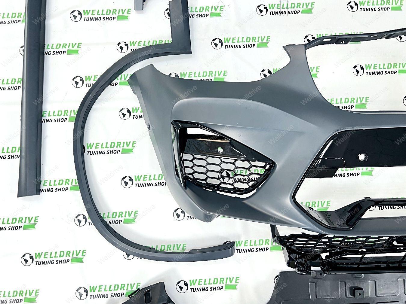 Комплектность: бампер передний в сборе, бампер задний в сборе с диффузором, накладки на пороги, расширители арок, крепежные элементы.