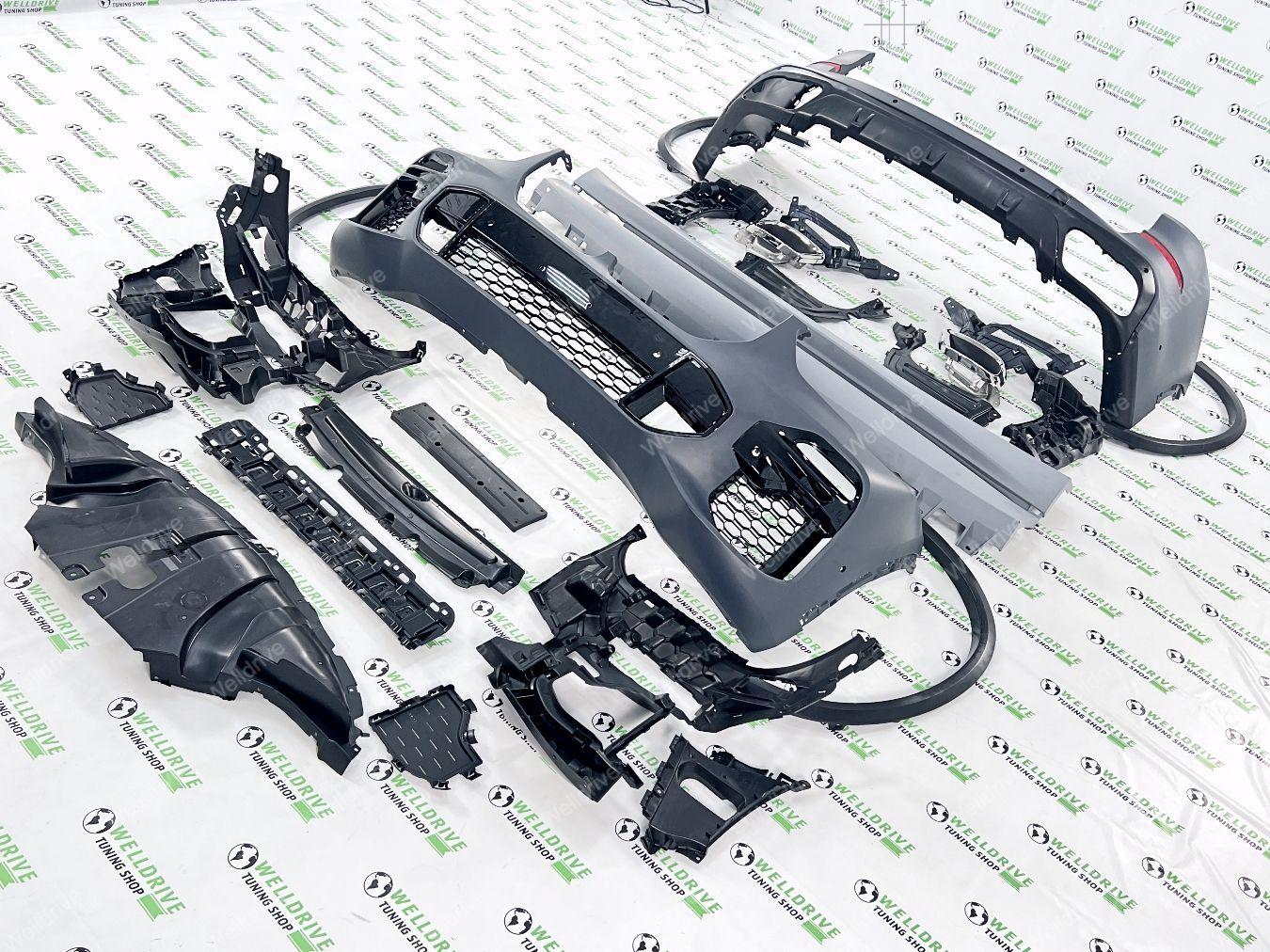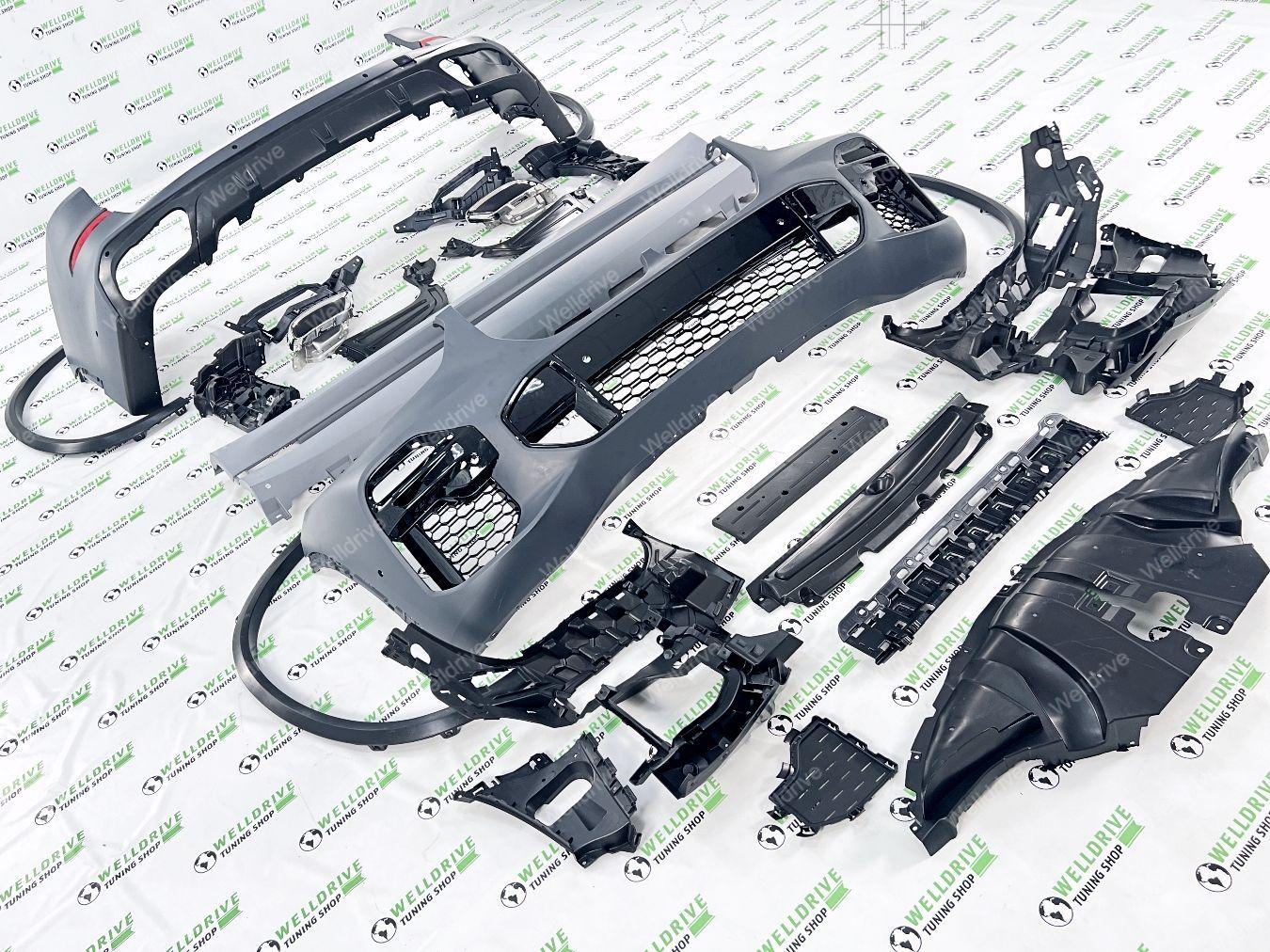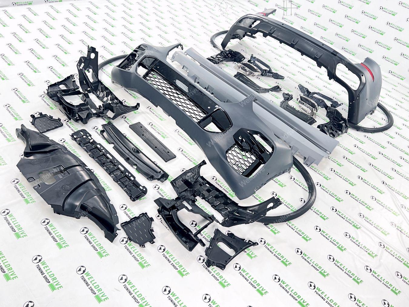 Комплектность: бампер передний в сборе, бампер задний в сборе с диффузором, накладки на пороги, расширители арок, насадки на выхлоп, крепежные элементы.
