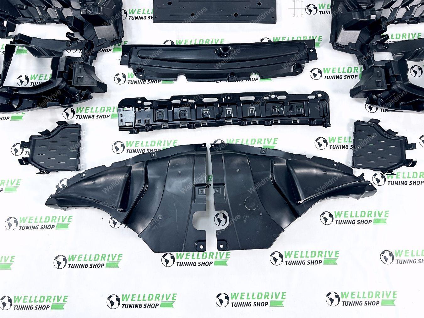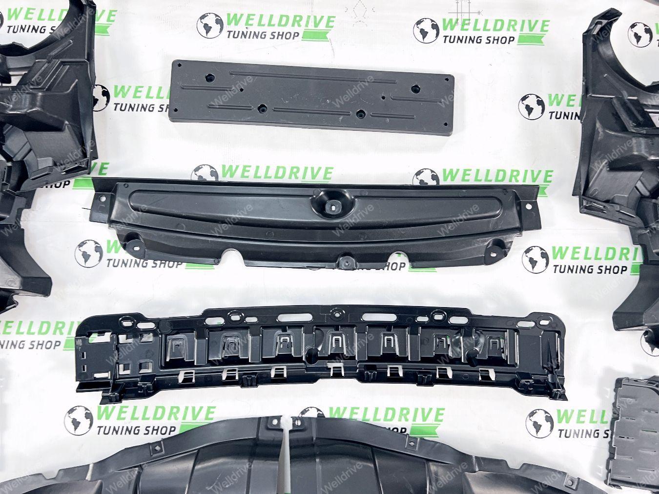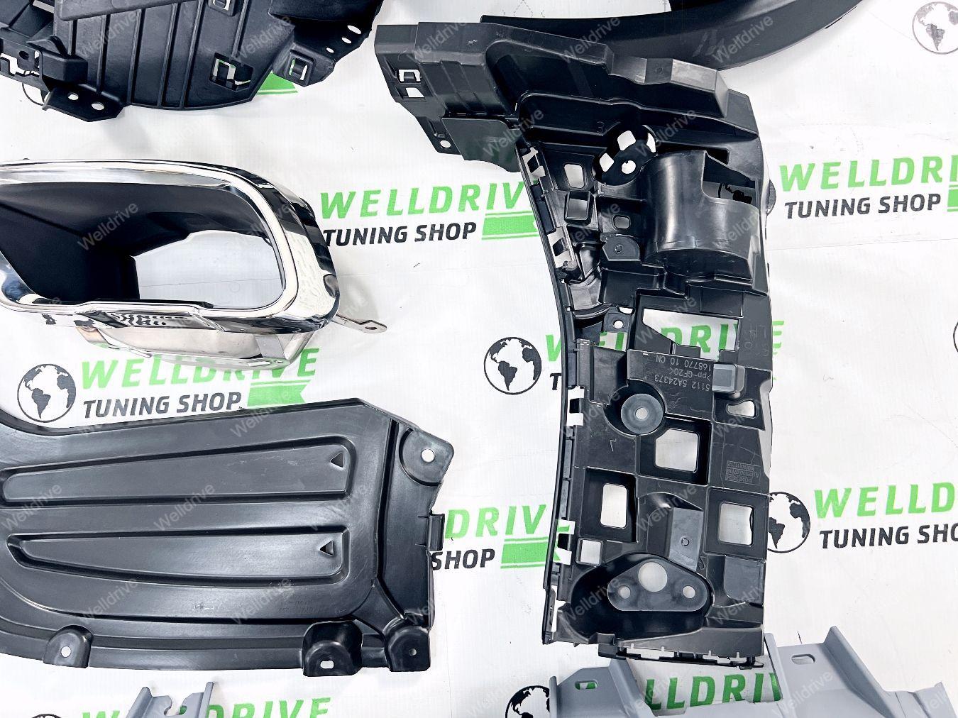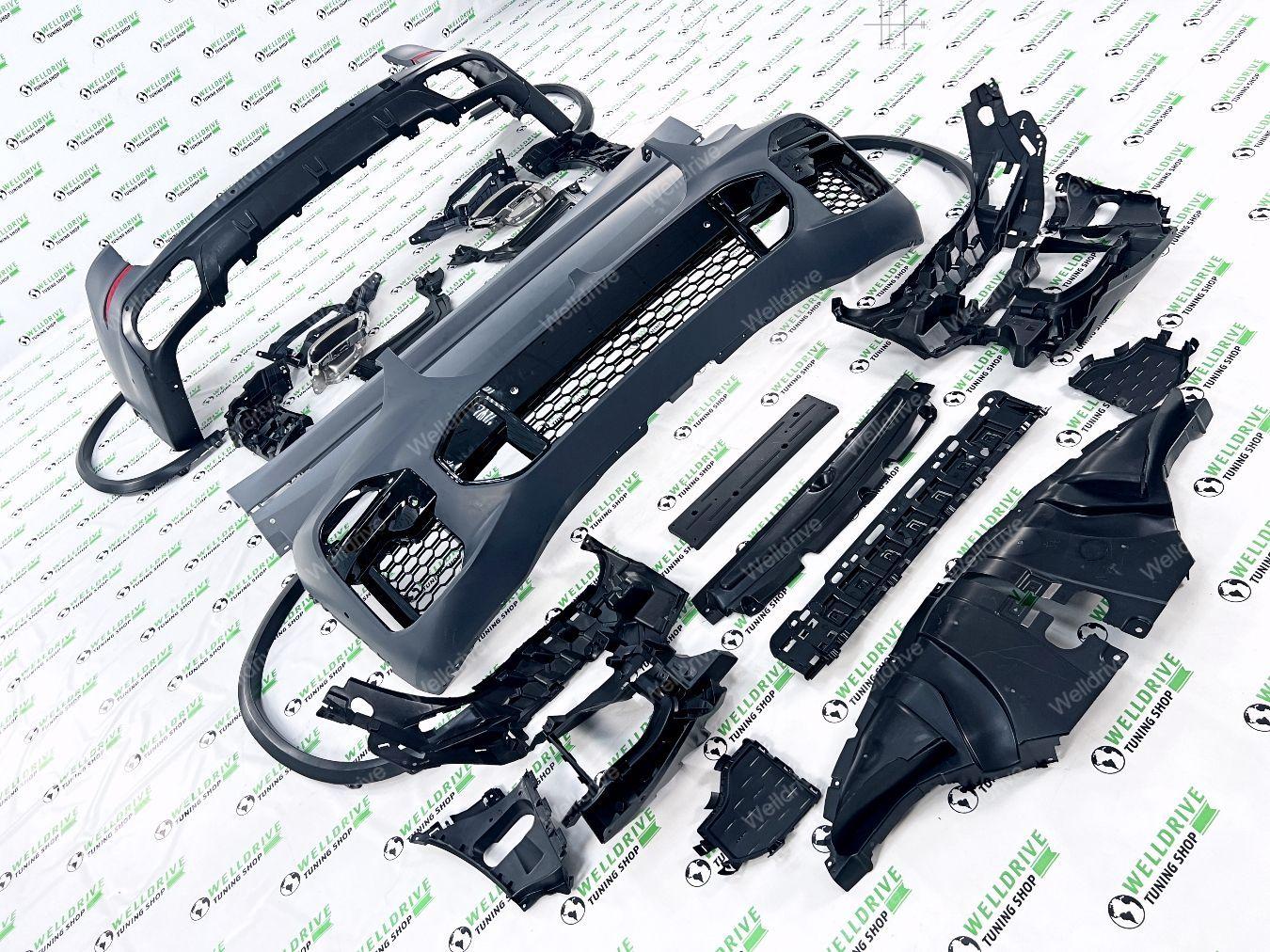 Комплектность: бампер передний в сборе, бампер задний в сборе с диффузором, накладки на пороги, расширители арок, насадки на выхлоп, крепежные элементы.