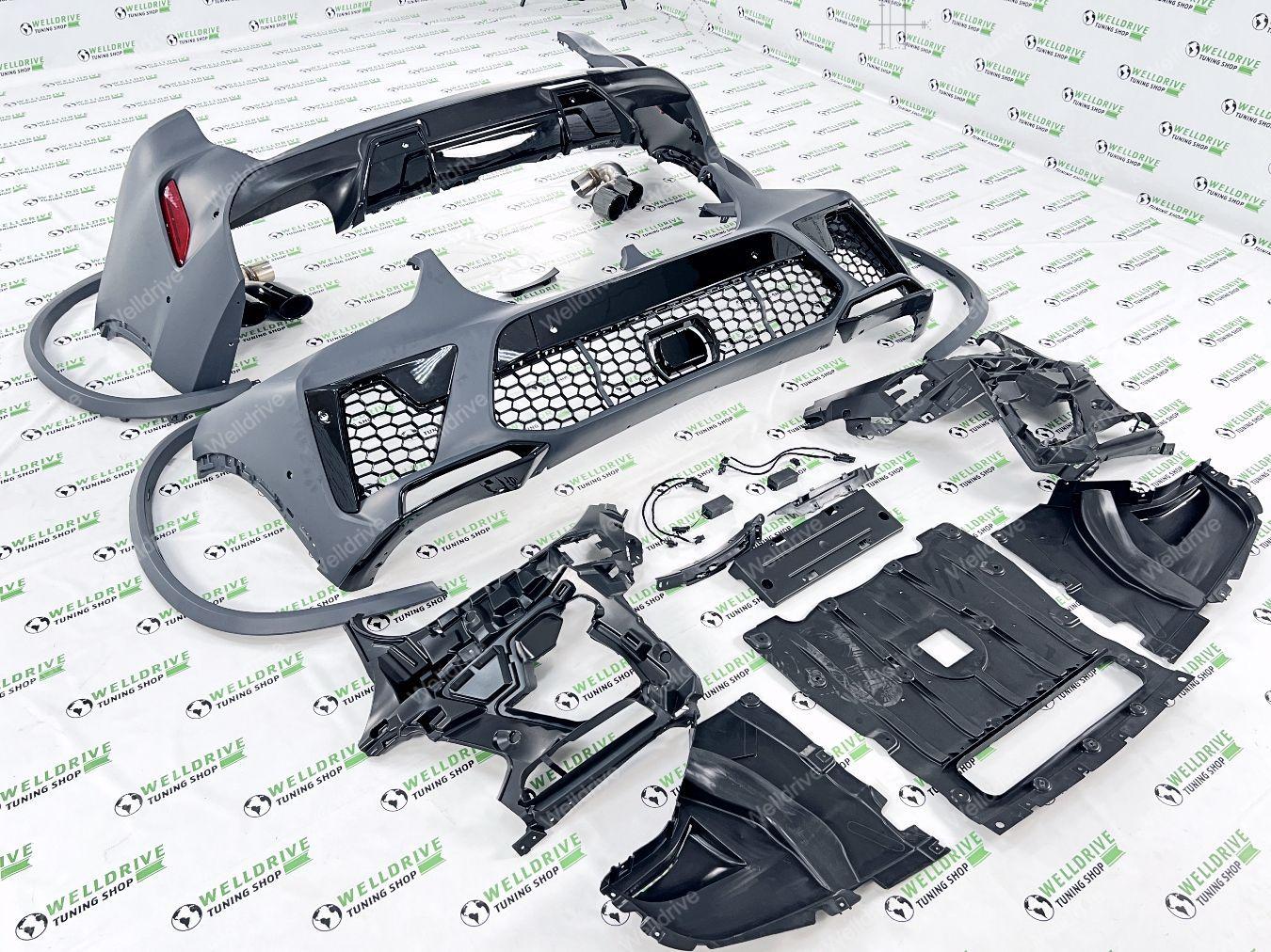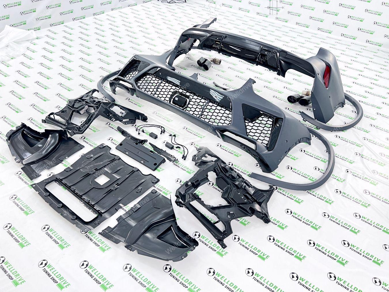 Комплектность: бампер передний в сборе, бампер задний в сборе с диффузором, накладки на пороги, расширители арок, насадки на выхлоп, крепежные элементы.