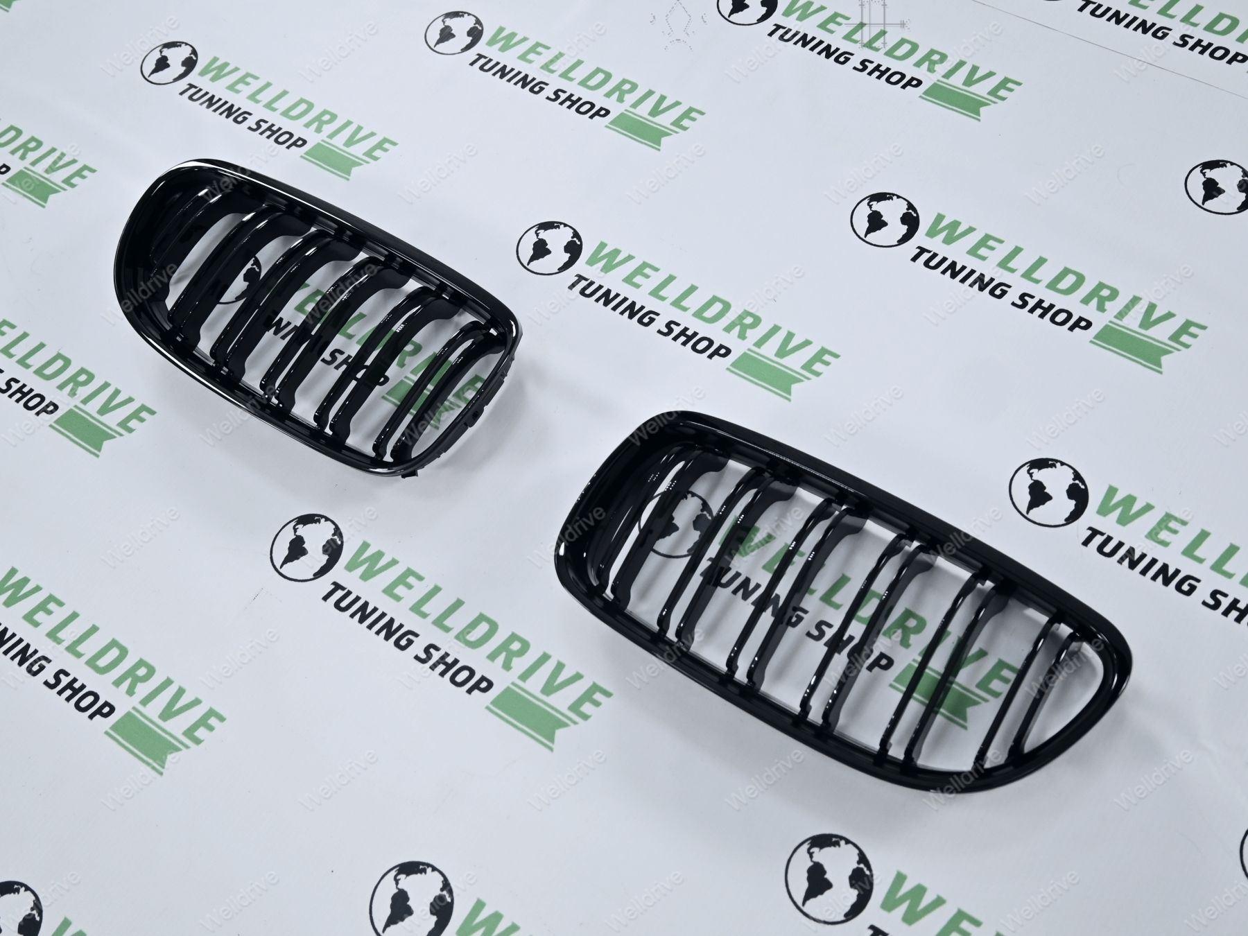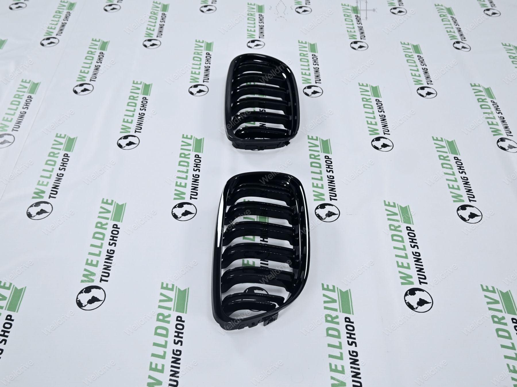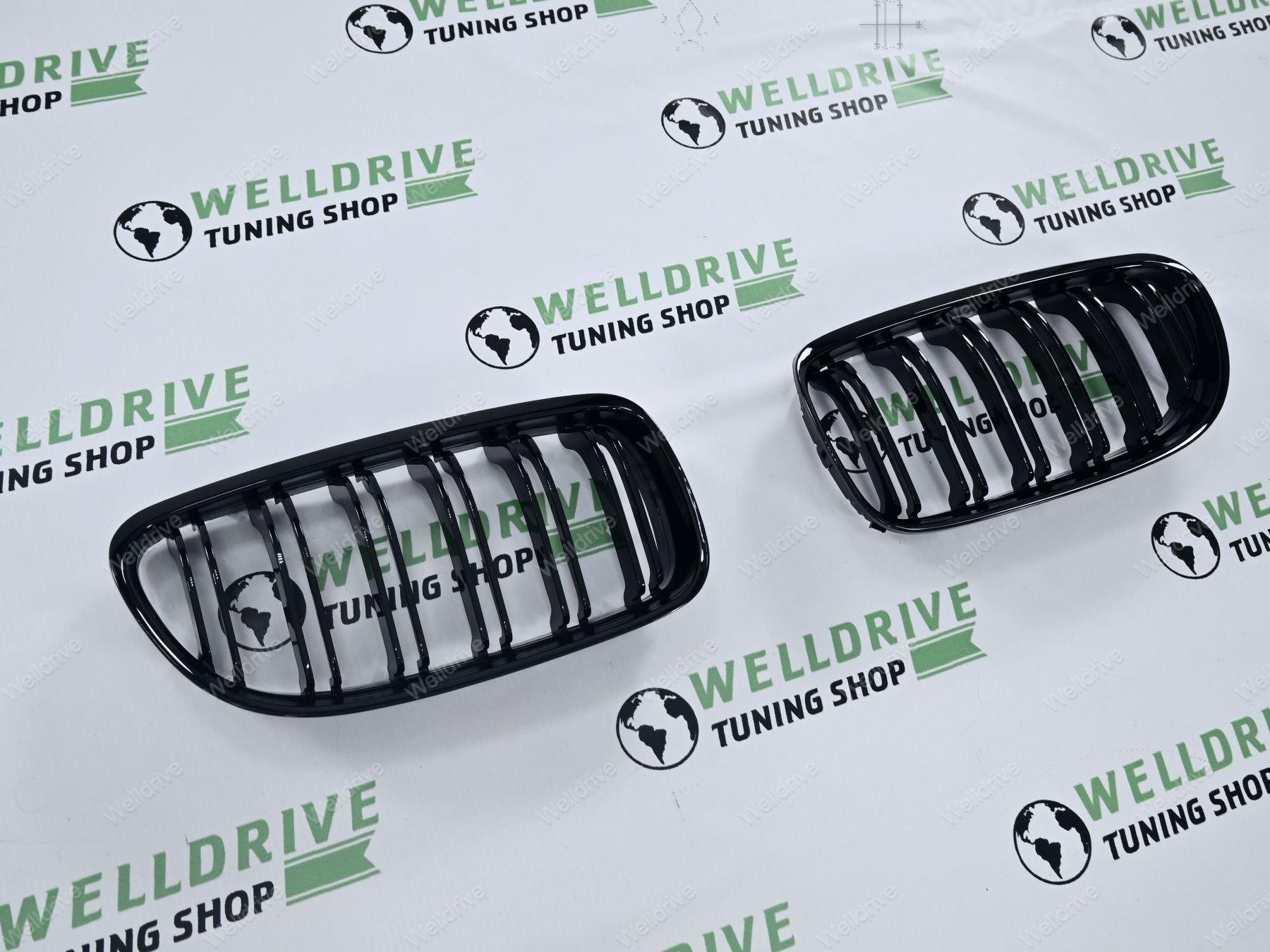 Решетки радиатора с двойными ребрами (ламелями) в M стиле BMW 3 E90 E91 рестайлинг черный глянец