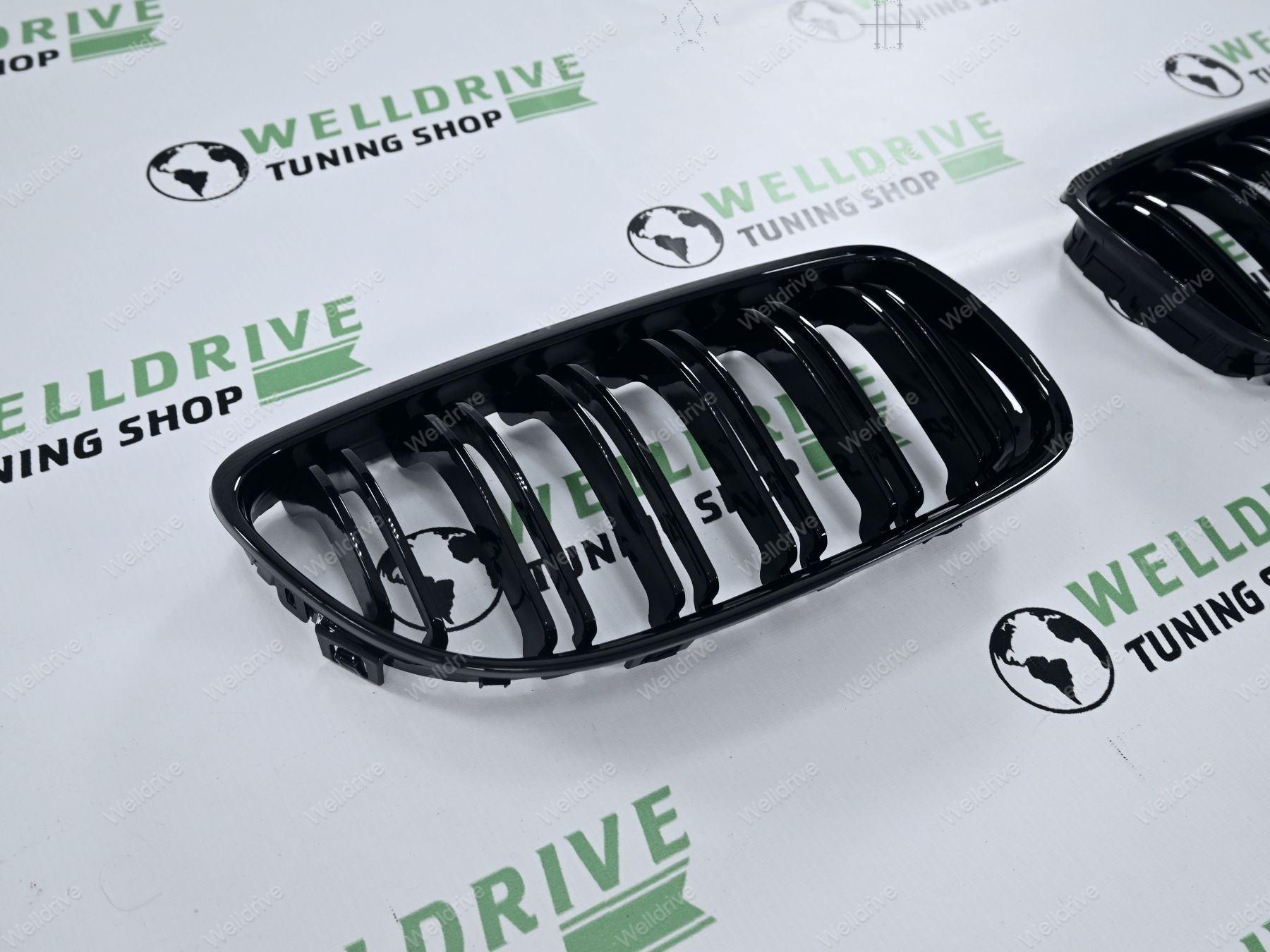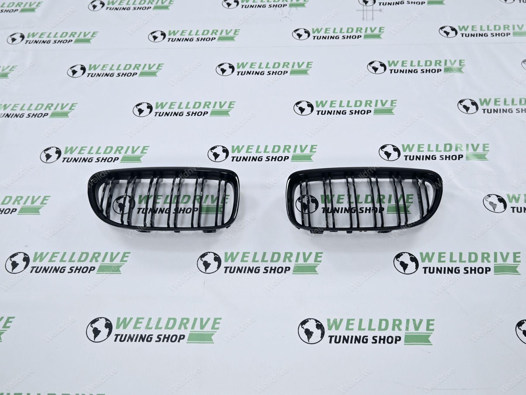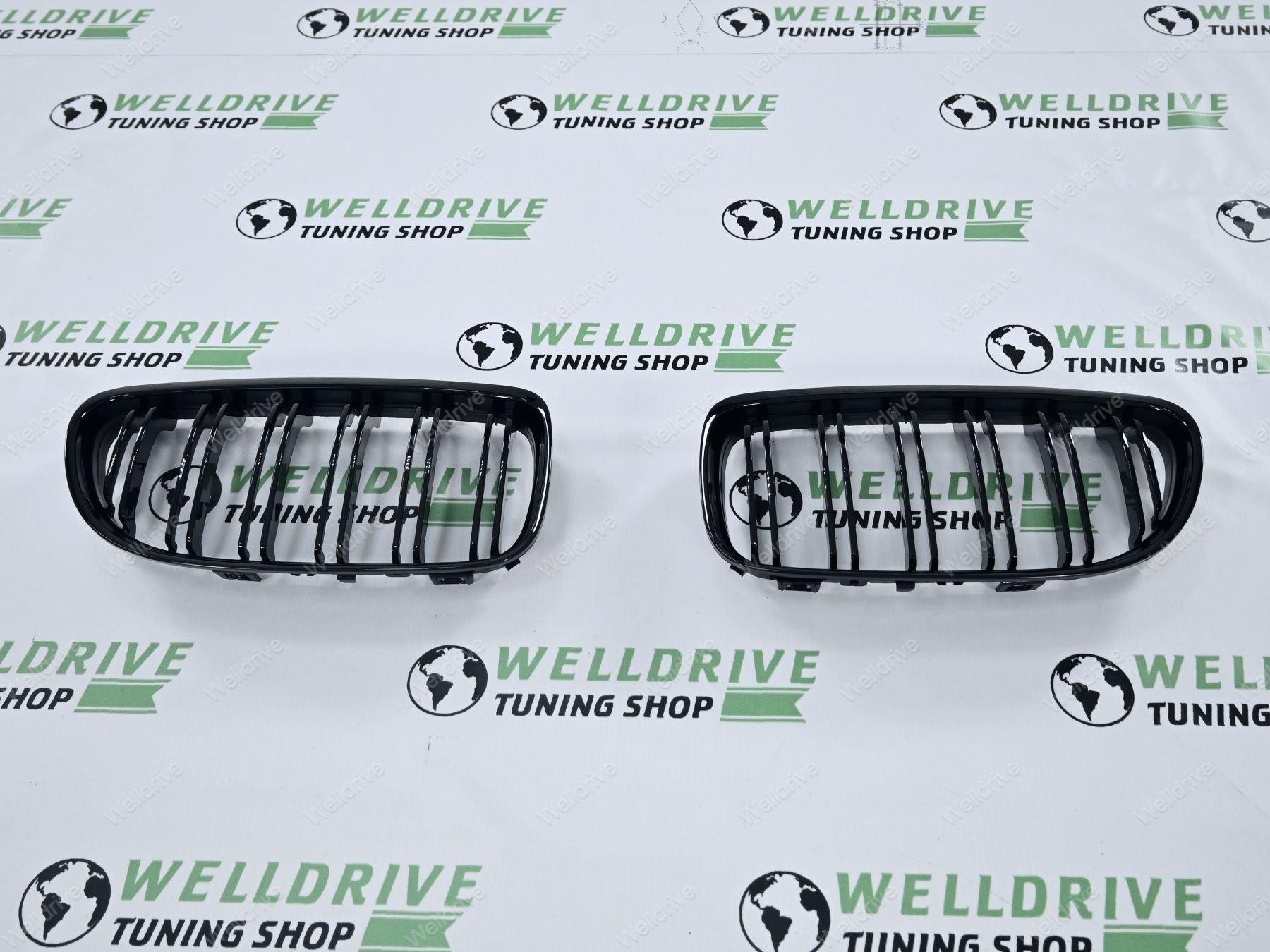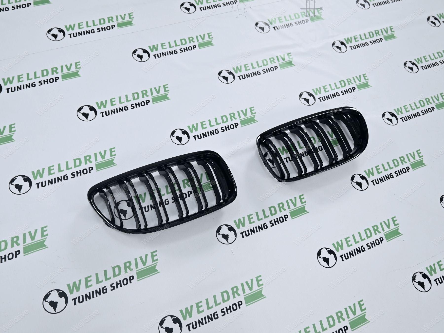 Решетки радиатора с двойными ребрами (ламелями) в M стиле BMW 3 E90 E91 рестайлинг черный глянец