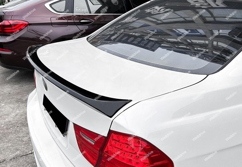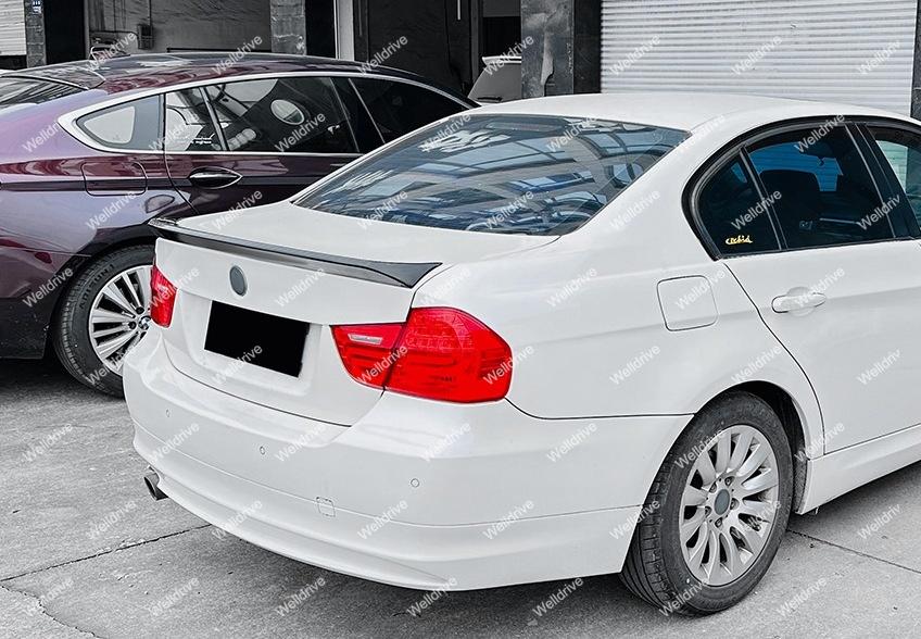 - Эстетическая привлекательность: Спойлер в стиле M-Tech в черном глянце значительно усиливает спортивный облик BMW E90, делая его более выразительным и запоминающимся.
