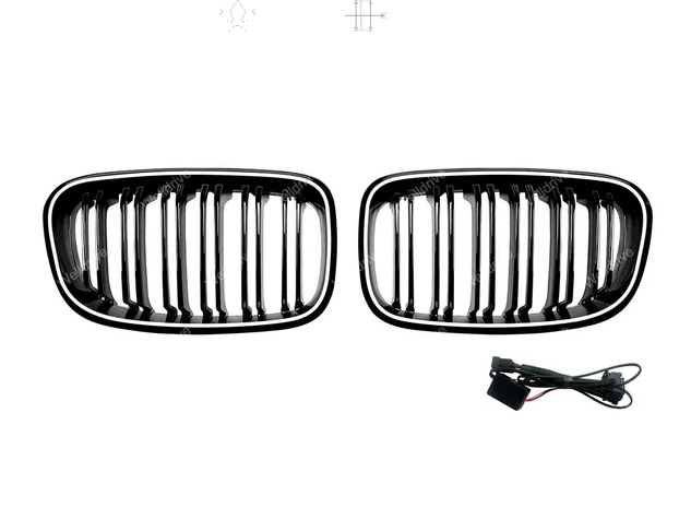 Решетки радиатора BMW 1-Series F20 F21 дорестайлинг 11-15 с LED подсветкой стиль M черный глянец