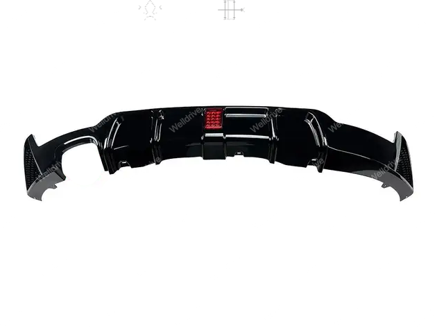 Материал диффузоров: ABS-пластик (акрилонитрил-бутадиен-стирол, твердый жесткий пластик, не гнется, хорошо держит форму, хрупкий при ударе, трескается от сильного удара по бордюру, черный глянцевый или матовый цвет, не требует покраски, используется в большинстве китайских и европейских диффузоров Maxton Design), полипропилен PP (гибкий пластик, гнется и возвращается в форму, не трескается при ударах до 10-15 км/ч, требует покраски в черный цвет или продается уже окрашенный, более дорогой чем ABS но долговечнее, используется в качественных репликах и оригинальных диффузорах BMW), стеклопластик (fiberglass, жесткий но легче ABS, используется редко в кастомных диффузорах, хрупкий при ударе, требует покраски), настоящий карбон (углеродное волокно плетение twill или plain weave пропитанное эпоксидной смолой, очень легкий и прочный, дорогой, используется в премиум диффузорах Vorsteiner, AutoTecknic, Akrapovic).