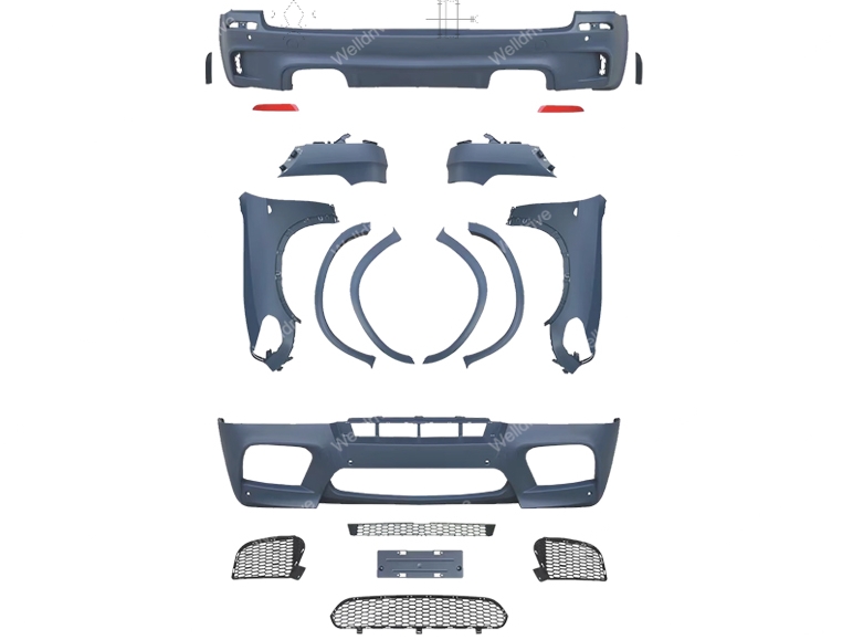Комплект обвесов BMW X5 E70 также отличается точностью подгонки. Все элементы рассчитаны на установку в заводские крепления, что исключает необходимость доработки и обеспечивает надежную фиксацию. Это снижает риск неправильной установки и возможных повреждений кузова.
